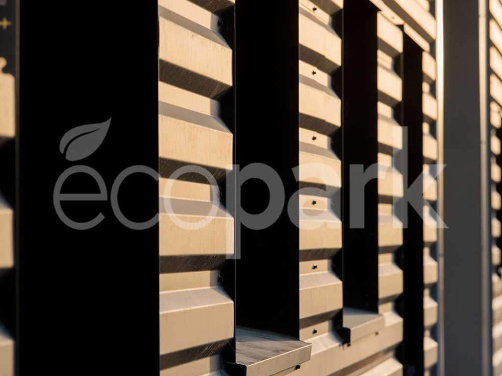 Les écopark sont munient d'ombrières solaires photovoltaïques avec bornes de recharge électrique et d'espaces "rencontre" paysagés et arborés.