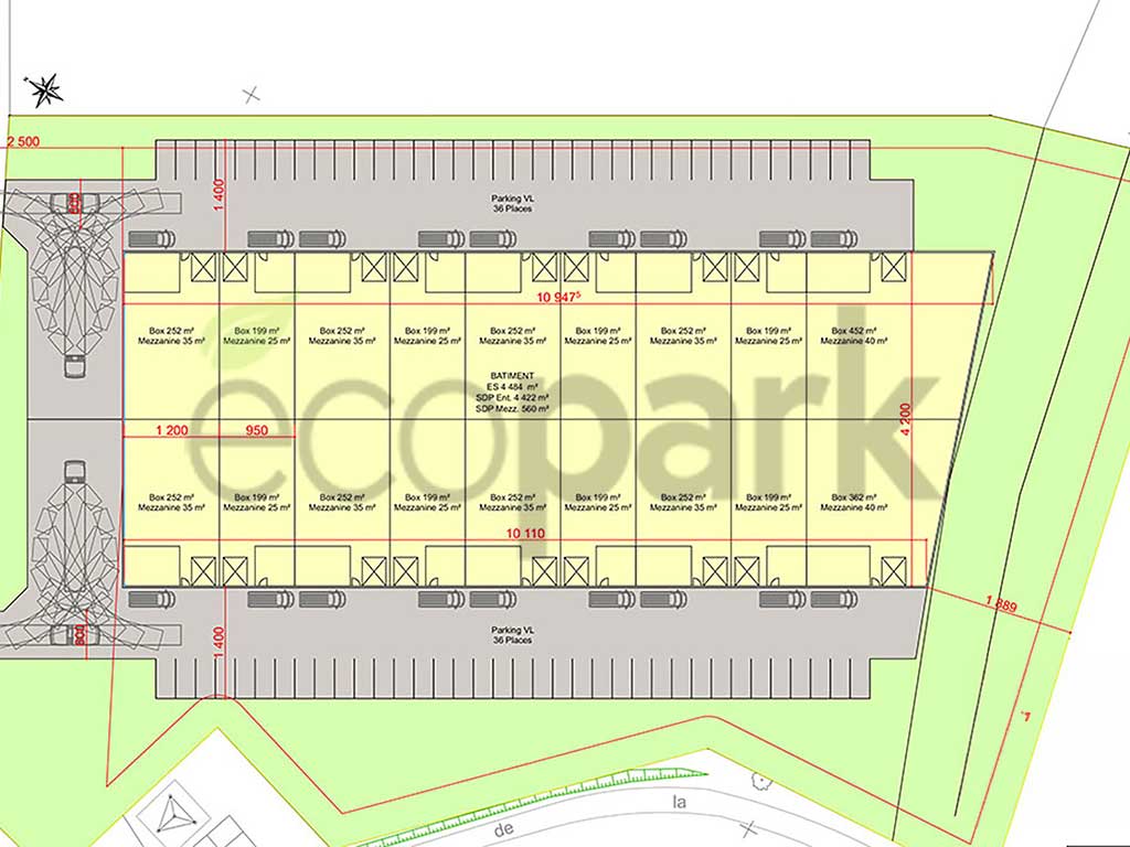 Les bâtiments sont composés de bureaux équipés avec superficies entre 20 et 250 m2, et des entrepôts spacieux avec quai de déchargement sur certains locaux.